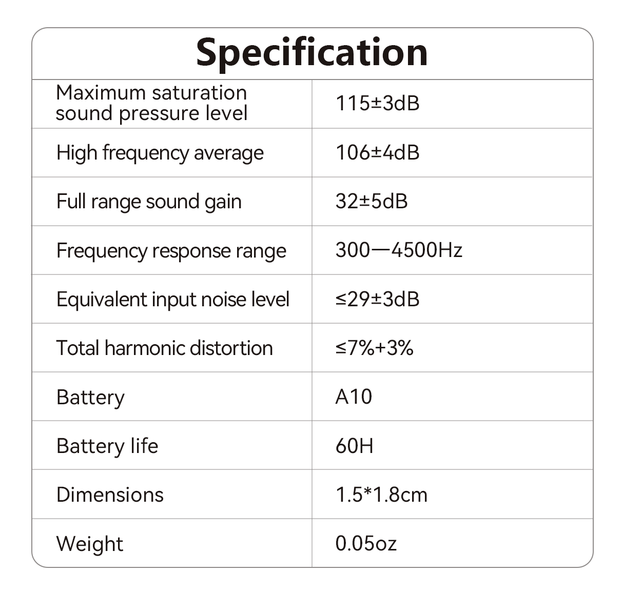 • Long Battery Life: A10 zinc-air battery lasts up to 60 hours, eliminating the need for frequent replacements.