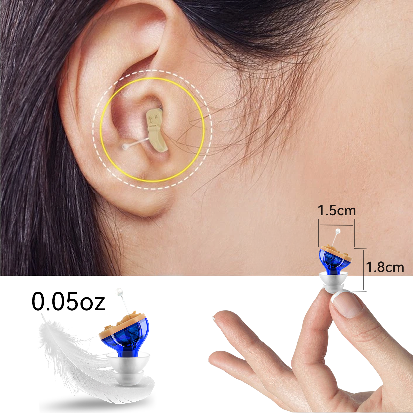 Each earbud weighs only 0.05oz, feeling almost weightless when worn. Its compact, lightweight design lets you enjoy clear hearing anywhere, staying connected to family and friends with effortless comfort.